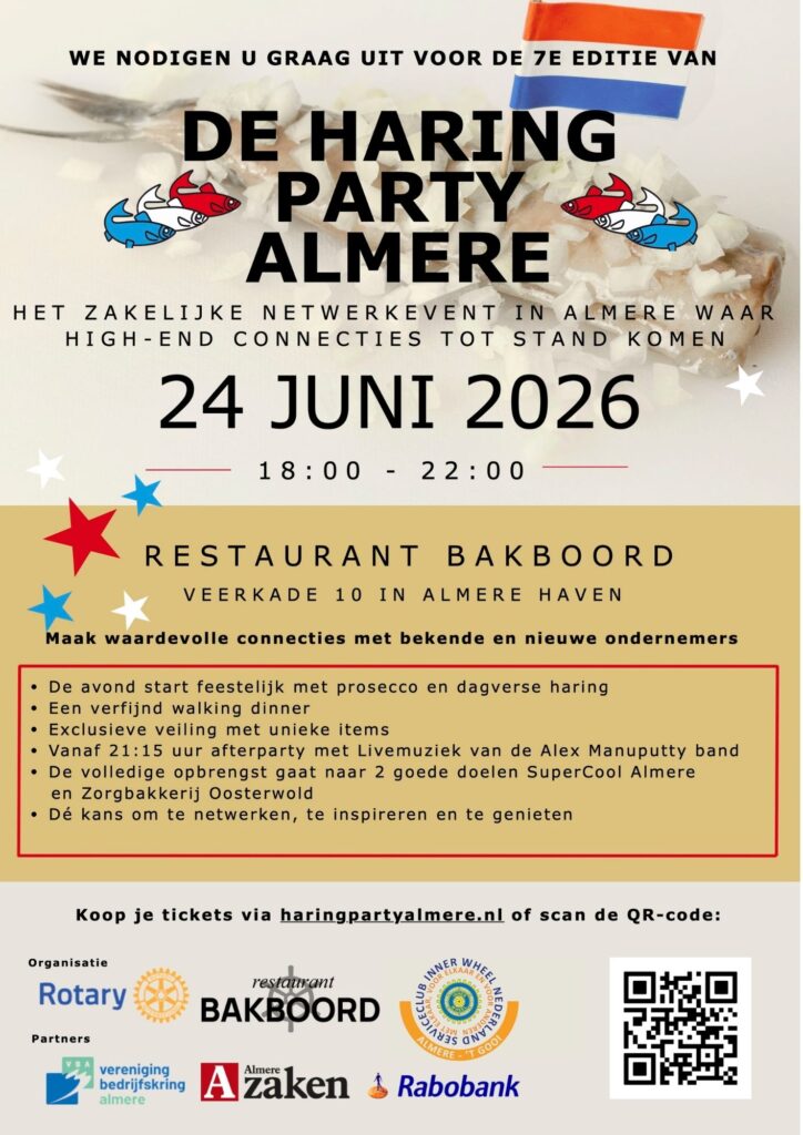 Voor de 7e keer wordt de Haringparty Almere georganiseerd in samenwerking met gezamenlijke Rotaryclubs Almere en vereniging bedrijfskring Almere.